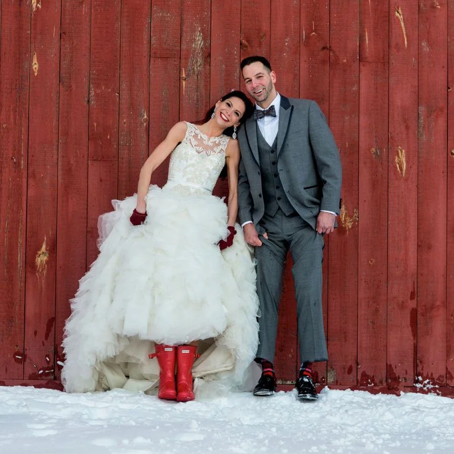 While summer brides are busy worrying about how to sweat-proof their makeup and how to avoid overheating in their ballgowns, you get to wrap yourself in a luxurious cape, wear a cute sweater over your dress, or skip the heels in favor of comfy boots under your dress.
